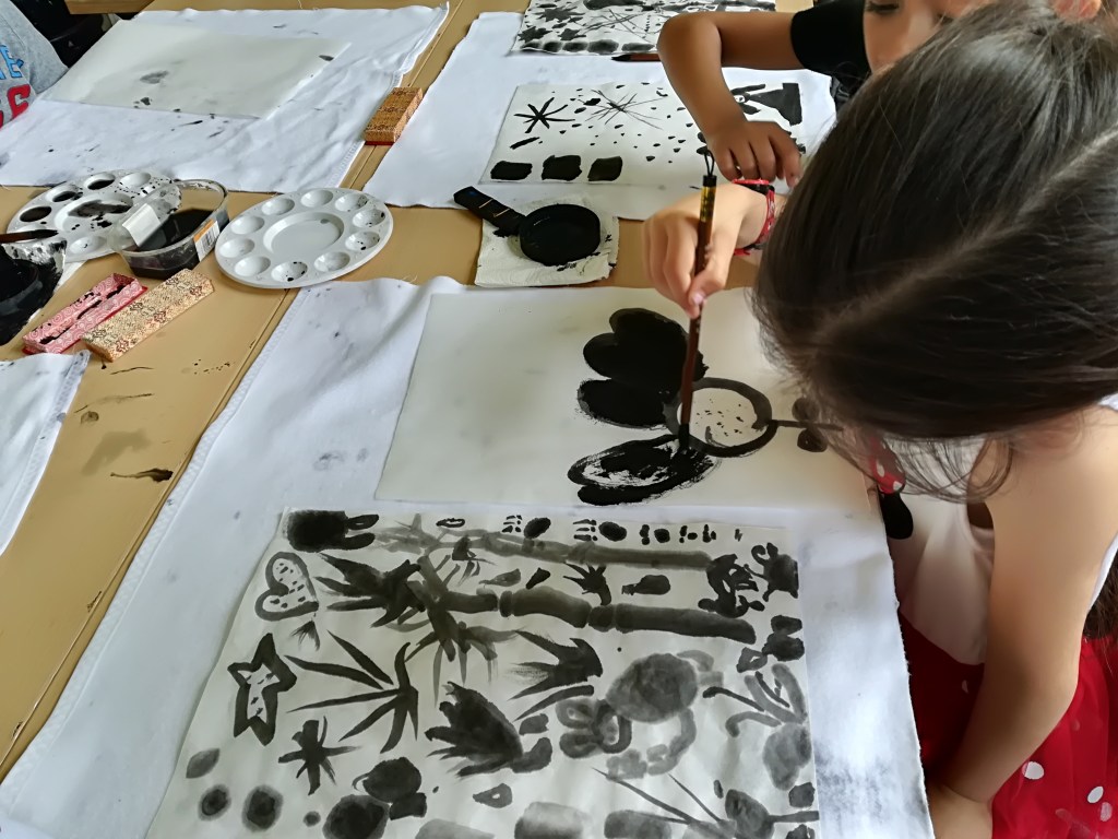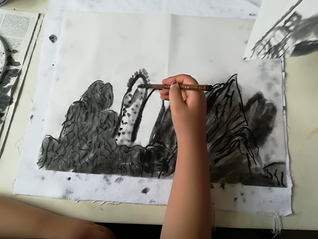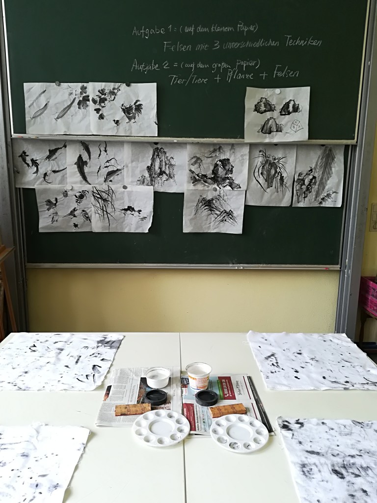 Chinesische Tuschmalerei Künstlerische edukative Arbeit, Kunstvermittlung Kunstexperten-Unterricht mit diversen Klassen in der Carl- Kreamer-Schule 2018, Berlin Related